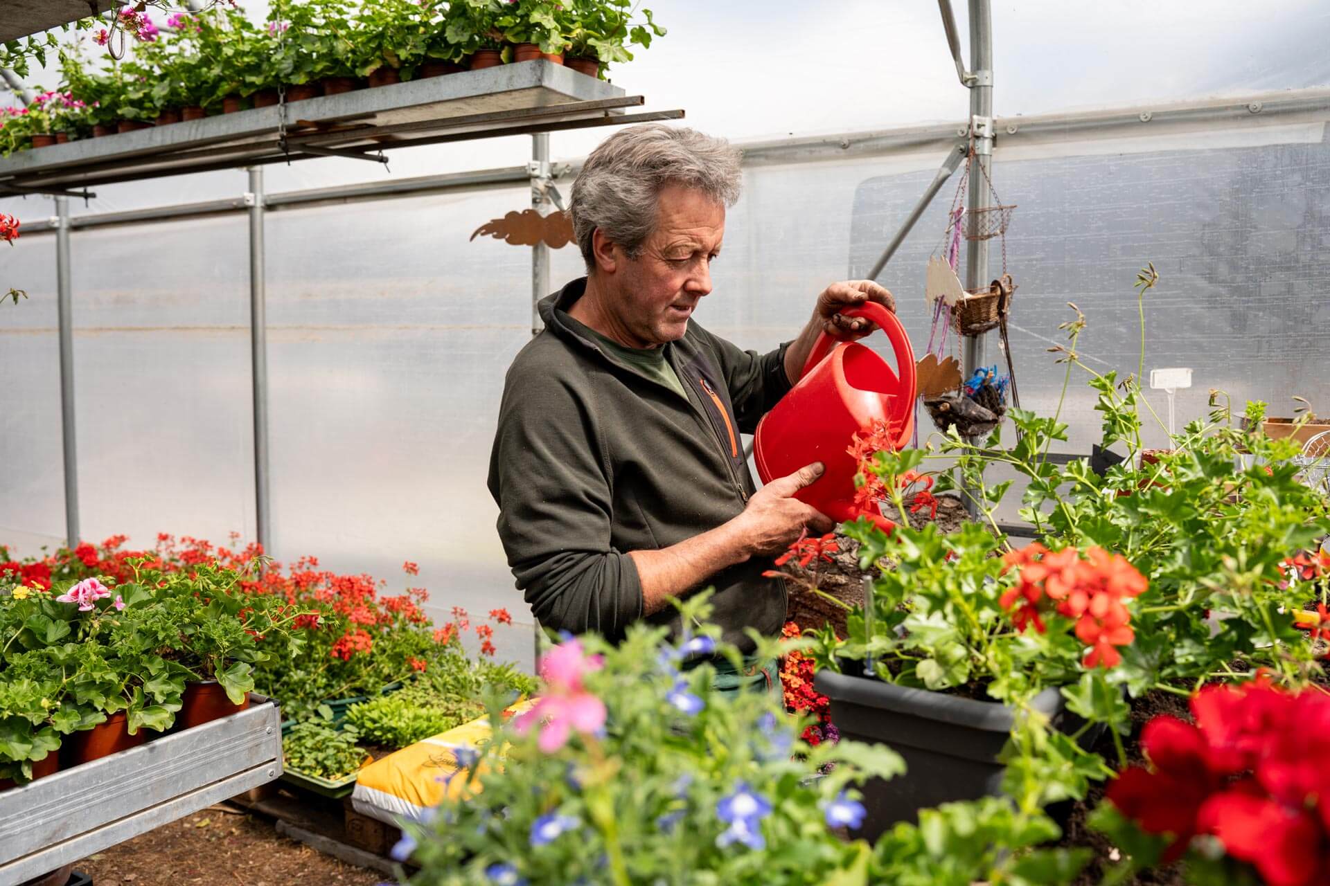 Von Mitte April bis Juli verwandelt sich unsere Gärtnerei in ein buntes Blütenmeer. Dann kultivieren wir für unsere treue Kundschaft kräftige Balkonschmuckpflanzen, leuchtende Rabattenpflanzen und liebevoll gepflegten Grabschmuck. In dieser Zeit können wir auf flinke Hände aus Familie und Freundeskreis zählen – gemeinsam sorgen wir dafür, dass jedes Pflänzchen den perfekten Platz findet.